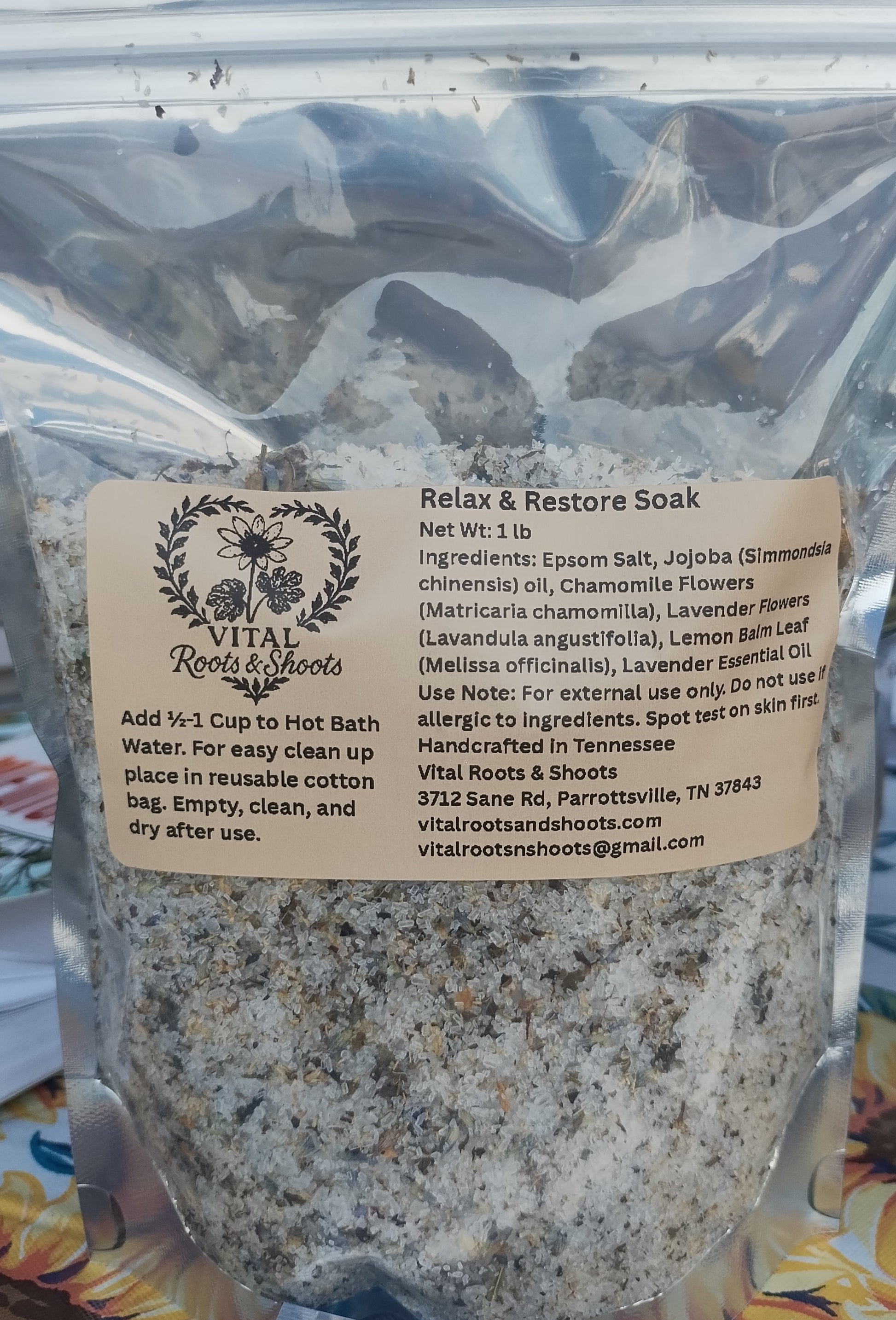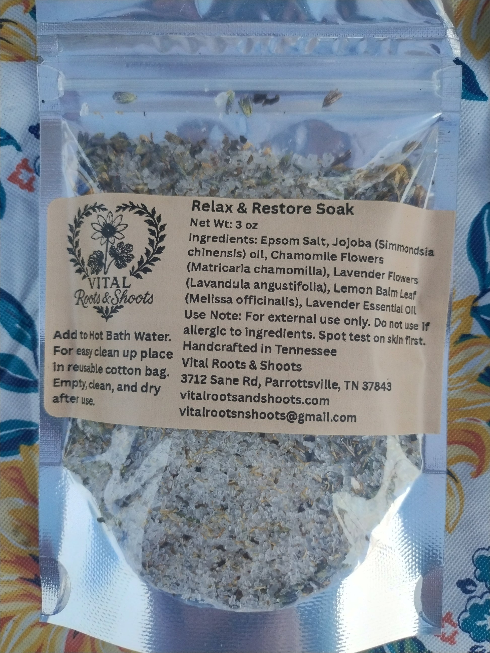 Add ½–1 cup to warm bath water. For easier cleanup, use a reusable cotton bag. Empty, rinse, and dry after use.